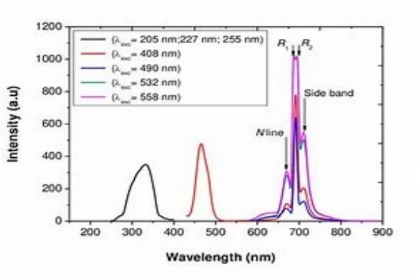 紅寶石激光晶體的一個定義特點是其獨特的能力,可以發出高強度的光脈沖。這歸因于晶體格中的鉻雜質,當被激發時,會以光的形式釋放出強大的能量脈沖。而694.3 nm的特定波長,被稱為紅寶石熒光線,使紅寶石激光器與眾不同。
